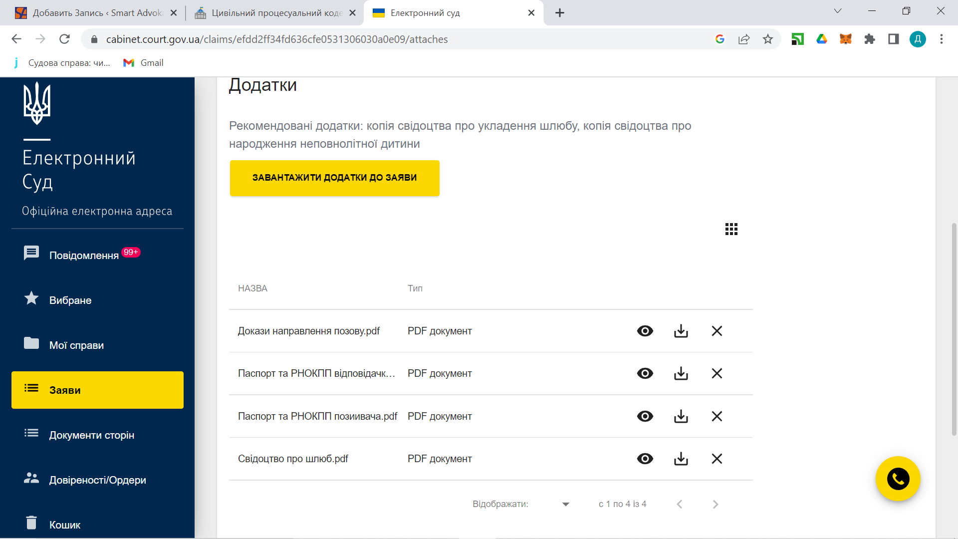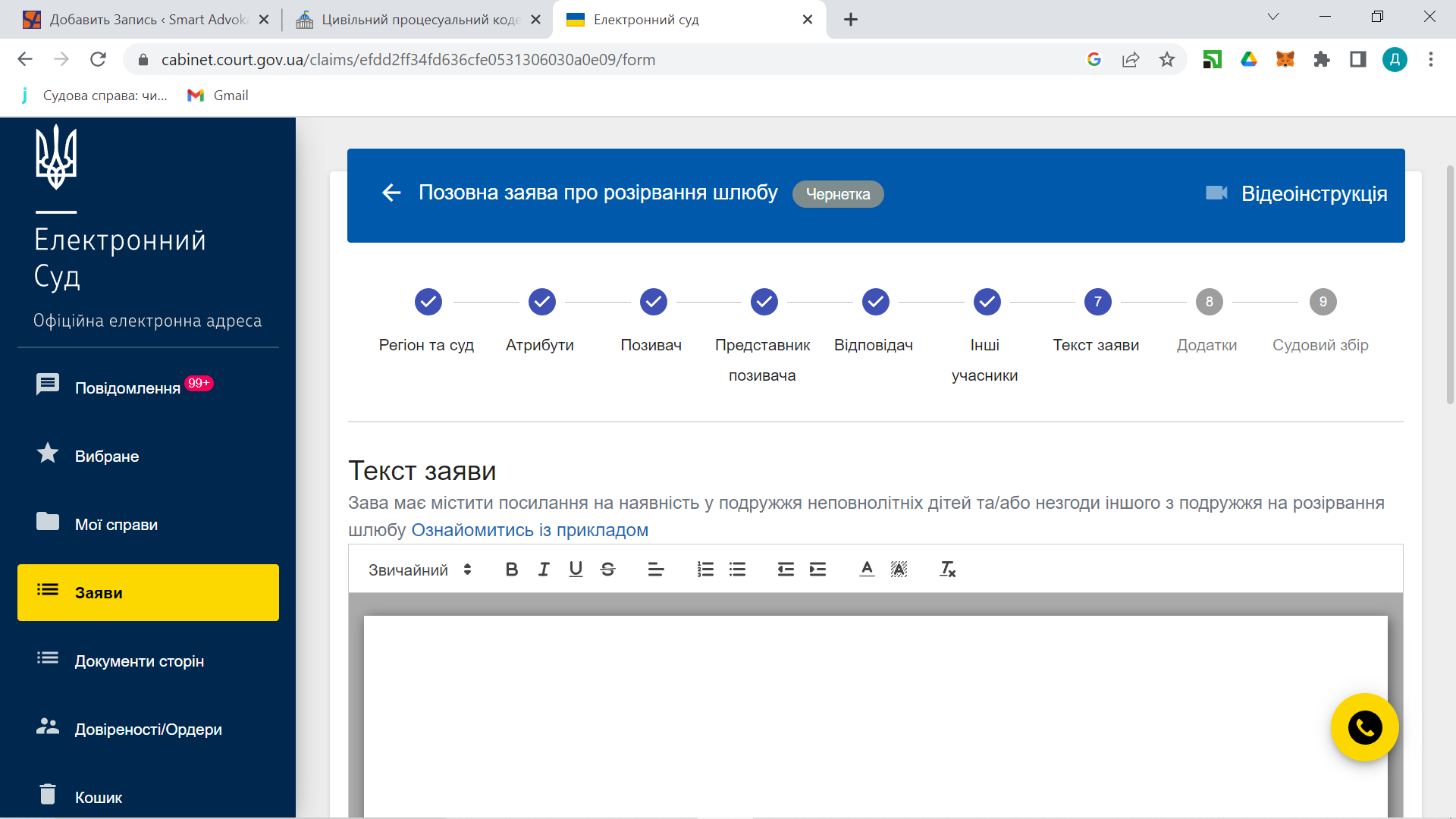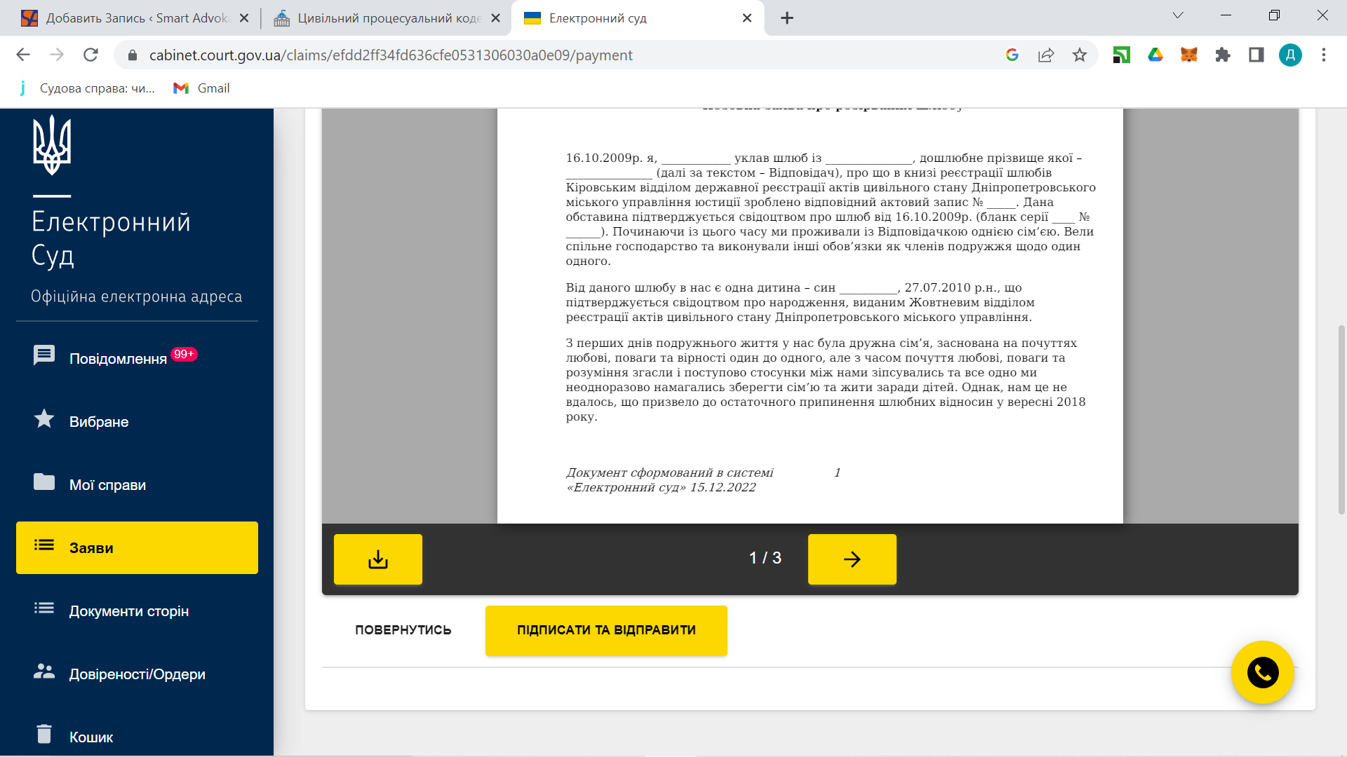 Підписуєте заяву та вона автоматично відправляється до суду. Чекаєте на відкриття провадження по справі.
